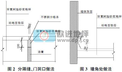 分隔缝按照砼垫层的分格缝设置,如图2 所示,分隔缝用分格条,拉线固定,严格控制顶面标高。地面与墙面交接处做45毅角。如图3 所示。
