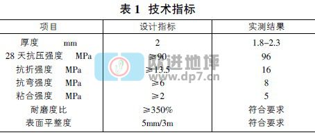 按照其它水泥地面的检查要求,通过使用3m 靠尺对其平整度进行检查,确保缝隙小于5mm,经质检部门的检测,其合格率均为100%,技术指标符合标准要求。(表1)