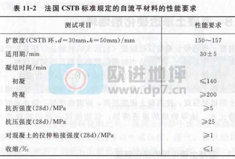 到目前为止还没有关于自流平地坪地面材料的欧洲及ISO标准,但是prEN列出了关于地面自光滑和/或自流平材料的标准试验方法。法国(CSTB24441-1)、新加坡(HDB)和韩国也制定了相应的标准。此外,一些协会如英国的EFNARC也提出了有关自流平材料生产、应用和相关试验的建议。法国CSTB标准规定的自流平地坪地面材料的性能要求见表