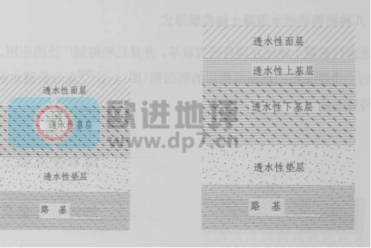 1、人行道和轻交通的透水路面的基本形式,如图4一2所示。