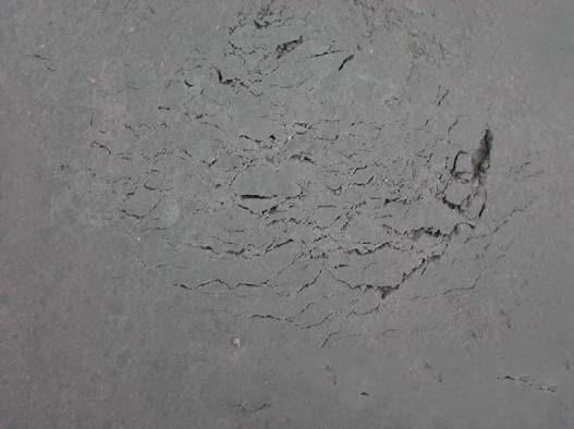 起皮脱层主要是由于干粉砂浆从基层混凝土吸水量不足,或铺撒不均造成的。由于施工环境及施工进度等因素影响,干粉料无法从基层混凝土中吸取足够量的水分,形成水泥浆体,在镘抹时极易出现如图所示的起皮脱层现象。即使通过最后收光可将表面处理平整光滑,随着水化的进行,后期必然会形成空鼓脱层,极易开裂破坏。